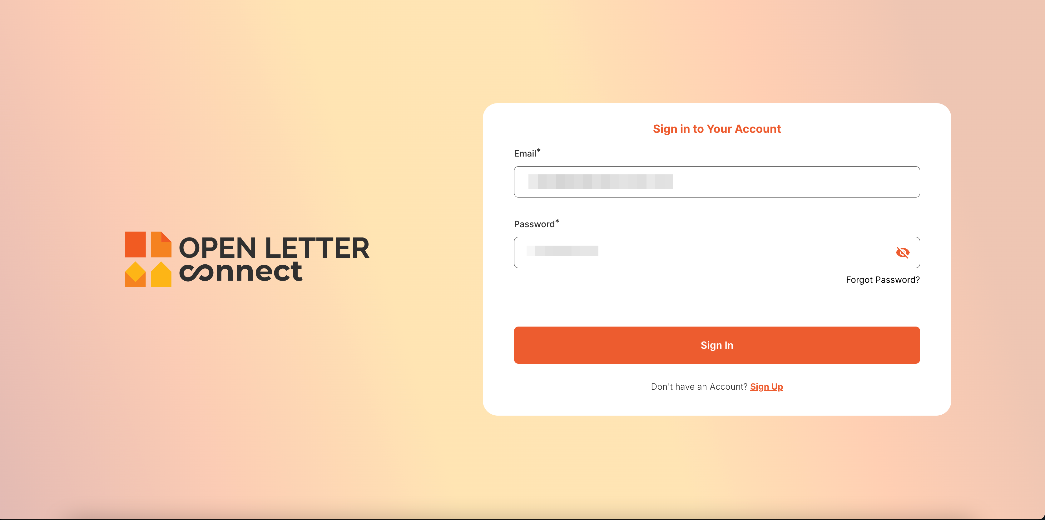 To access the webhook settings, you need to log in to your Open Letter Connect account: