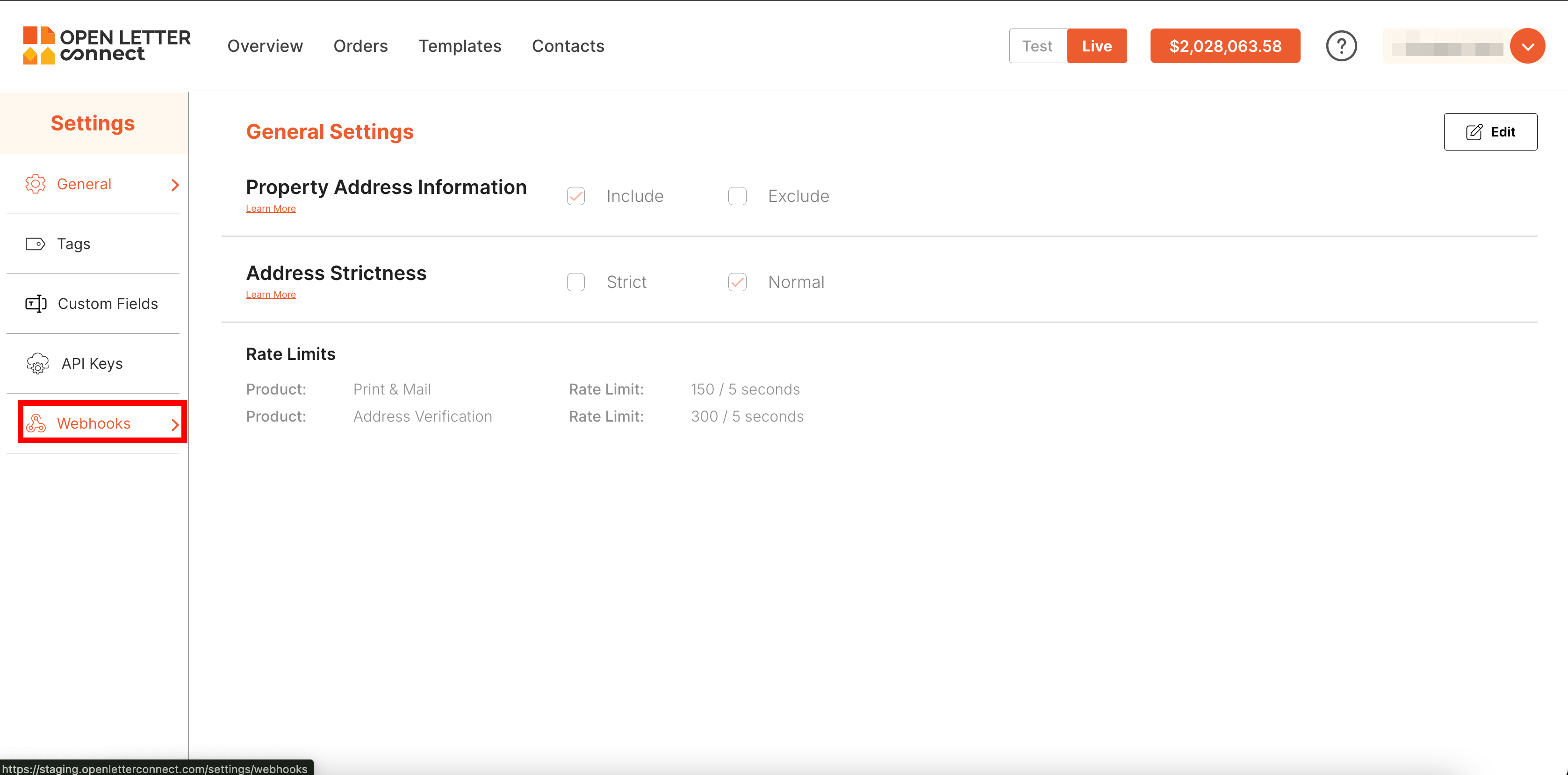 To set up webhooks with Open Letter Connect, follow these steps: